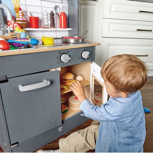 המטבח המושלם למשחק דמיון. ארון, תנור, כיריים המשמיעים צלילי בישול ומאירים וכיור יחד עם מדף עץ המאפשר תלייה של אביזרים. רבותי – תתחילו לבשל! מחבת ותרווד כלולים.